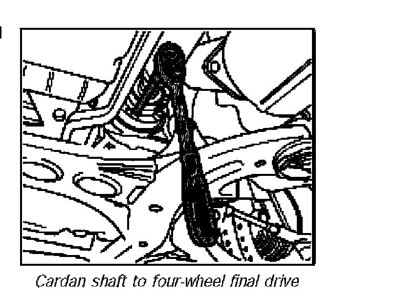 13. Fix cardan shaft with new screws to the front-axle final drive. Initial tightening 22 ft. lbs. Final tightening 90 °