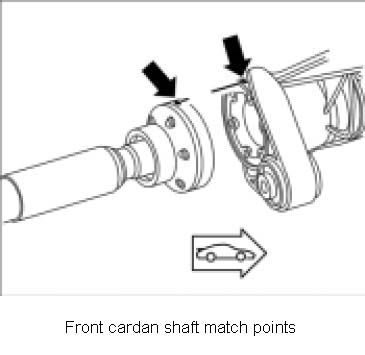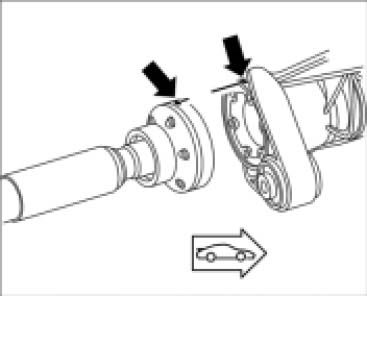 ^ The colour markings, match points -arrows-, on the cardan shaft and on the all-wheel final drive flange must be aligned. This will neutralise the residual imbalance of the components.