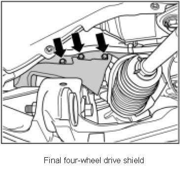 2. Remove three shield screws-arrows- on the all-wheel final drive.
