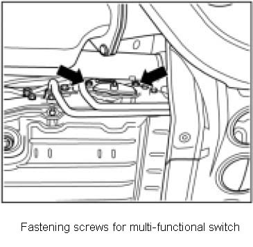7. Unscrew fastening screws on the multi-functional switch -arrow-and remove switch.