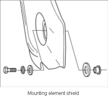 ^ When installing the shield, ensure that all fastening parts, Mounting element shield are present and inserted correctly.