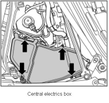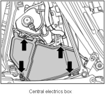 2. Open lid of central electrics box. To do this, loosen the four fastening screws.