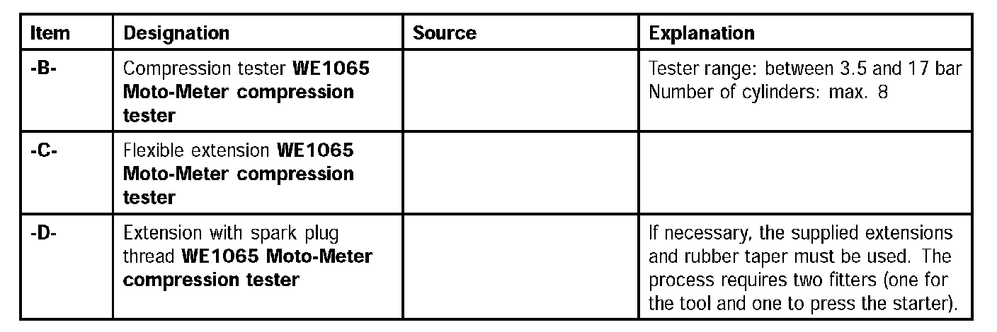 ^ The fuses for the injection system and the ignition system must be removed during the test.