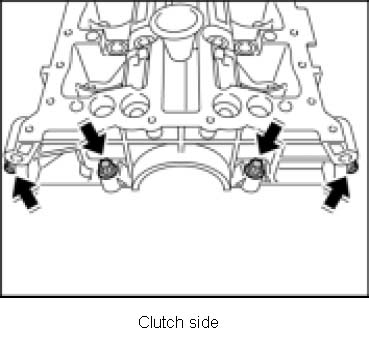 Tighten the four hexagon socket bolts on the clutch side (M8 x 35) Tightening torque: 17 ft-lb.