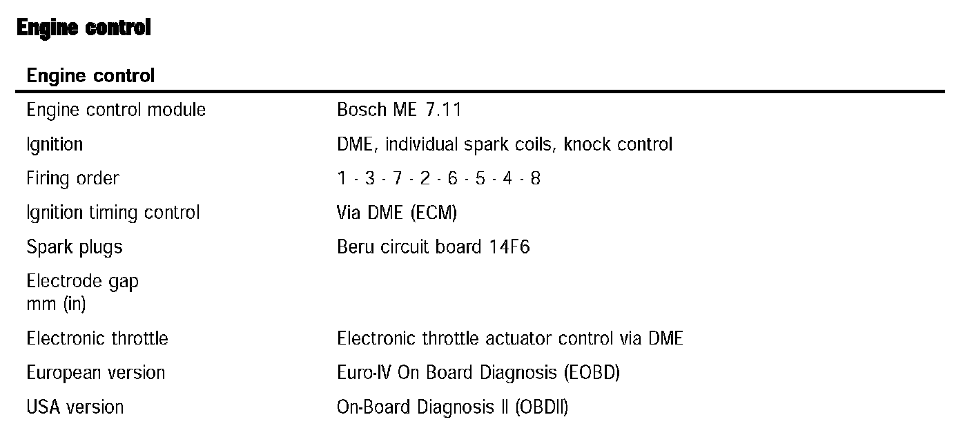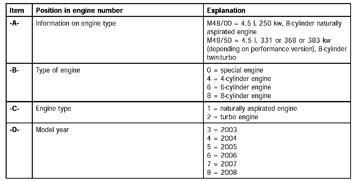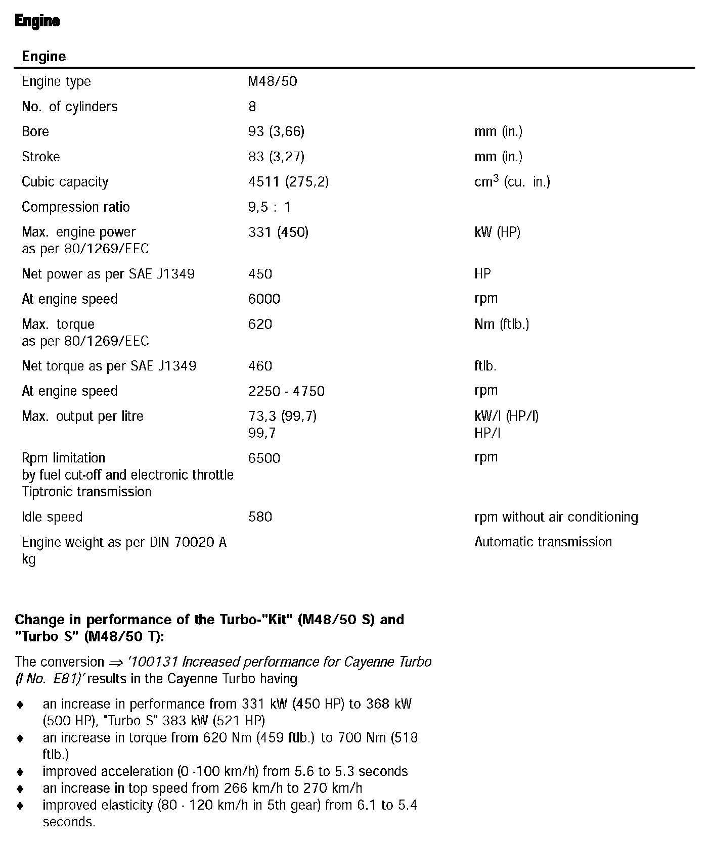 Technical data for M48/50 engine (Cayenne Turbo)Information