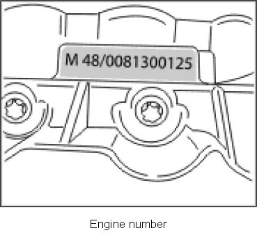 The engine number is on the underside of the vehicle at the left side of the engine on the sealing face between the bottom section of the crankcase and the oil pan.