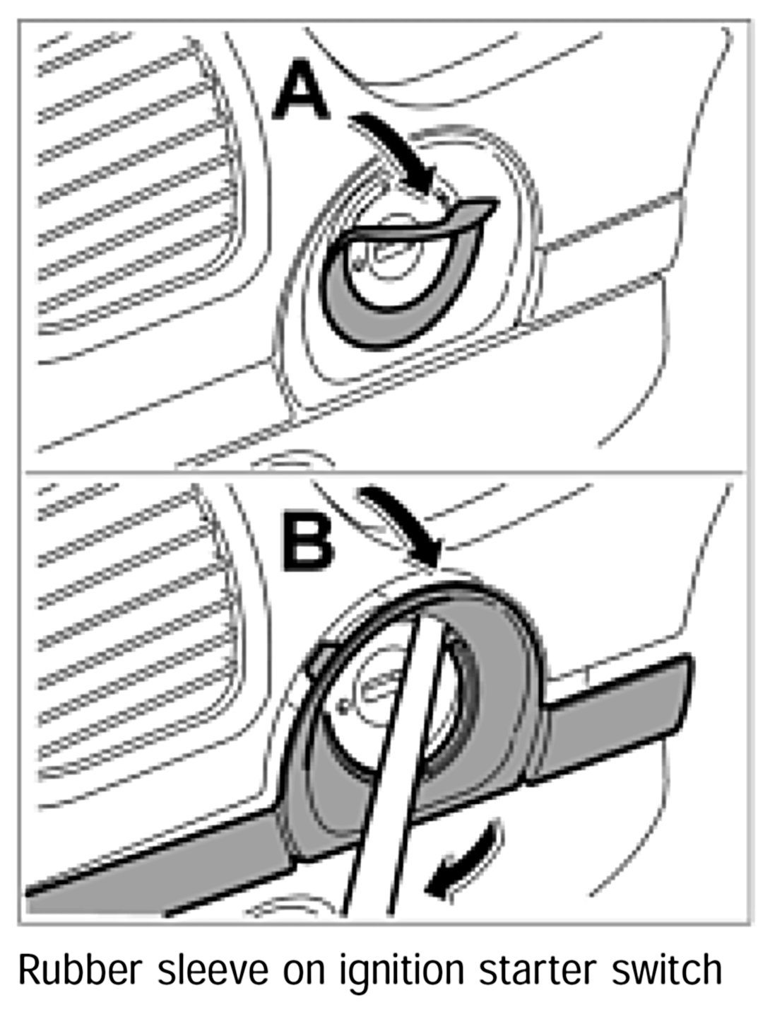 1. Carefully lift rubber sleeve on the ignition starter switch -arrow A- using a screwdriver, for example, and remove it.