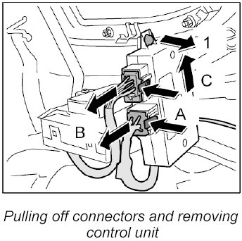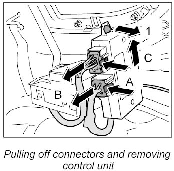 - Before removing the control unit for the towbar, switch off the ignition and remove the ignition key.