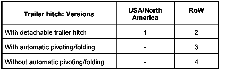 - The No automatic folding/pivoting option can be coded if there are doubts about safety. The button then must be kept pressed until the trailer hitch is completely retracted or extended.