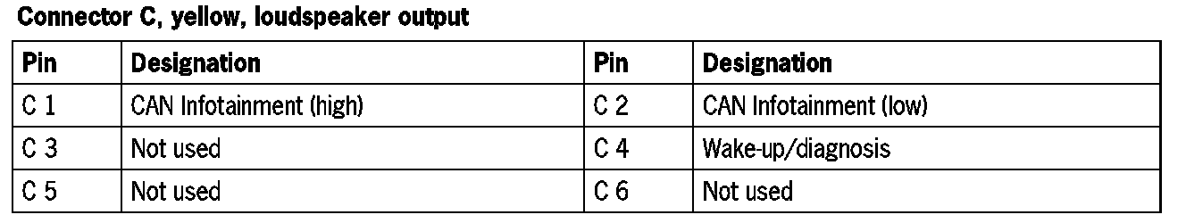 Connector C, yellow, loudspeaker output