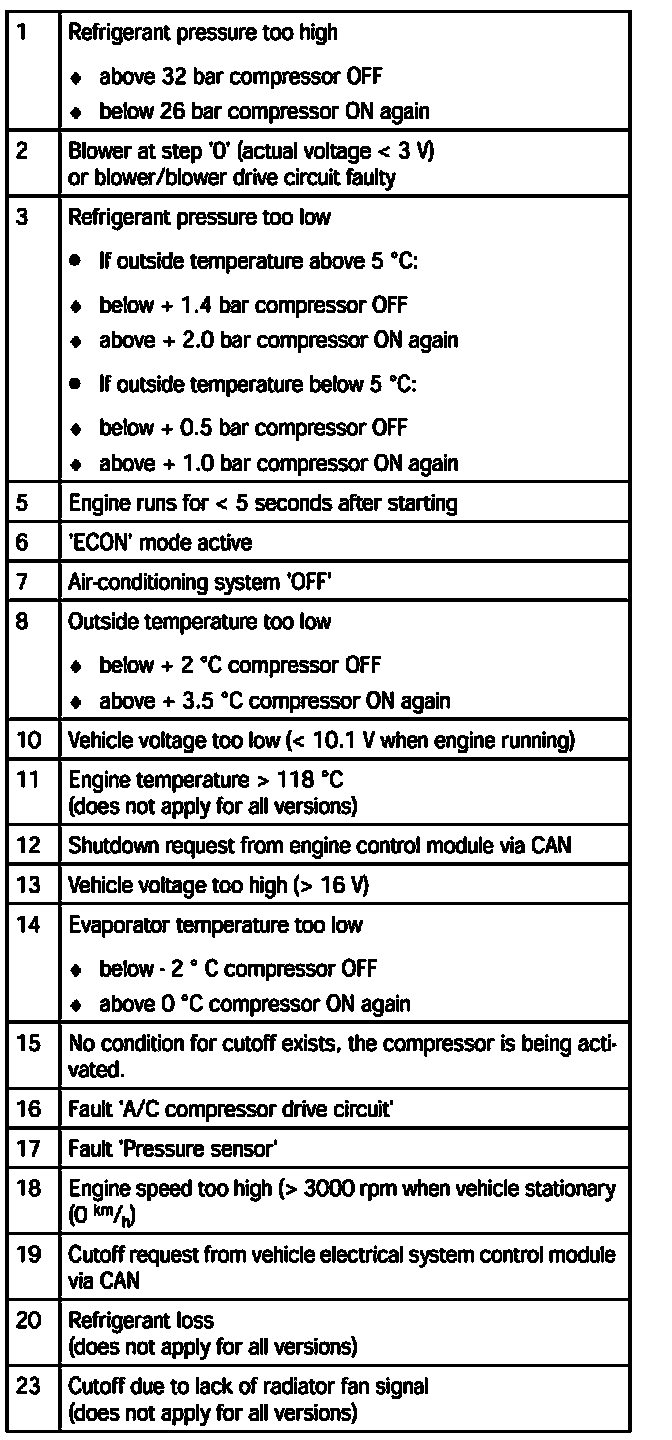 In menu item 'Inputs signals', the actual reason for compressor shutdown can be read out. Numbers from '1' to '23' are output. The meaning of each number is shown in the following table.