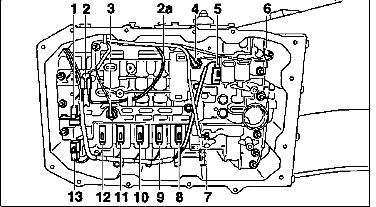 13 Shift solenoid valve (S2) integrated into hydraulic control unit