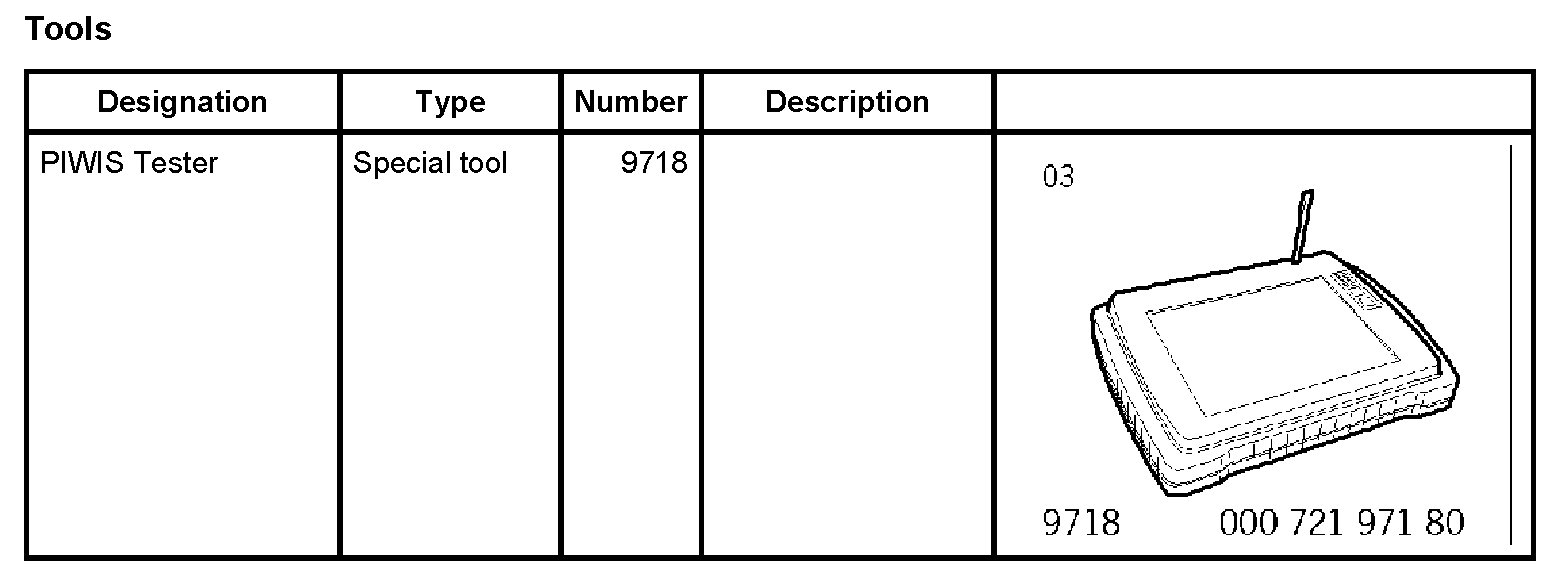 - If possible, before the control unit is removed and replaced, a read-out of the vehicle data should be obtained from the Porsche PIWIS Tester 9718 System Tester.