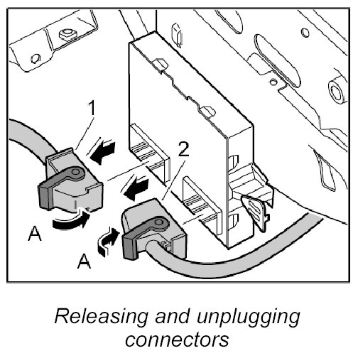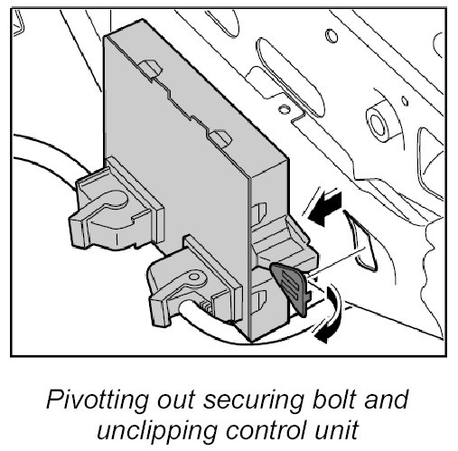 - Before removing the control module, switch off the ignition and remove the ignition key.