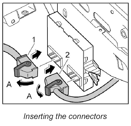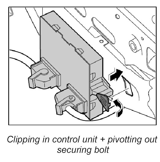 3. Clip in control unit on the support for the steering wiring and engage the locking mechanism for the lock.