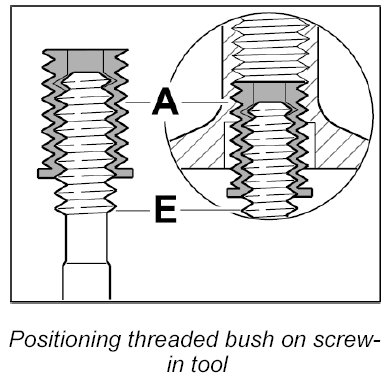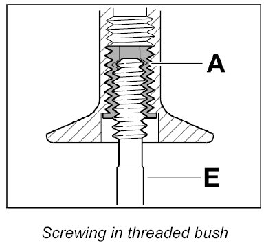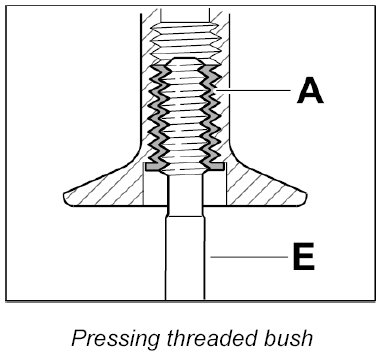 Screw threaded bush A in fully (note bush length classification) using the screw-in tool E.