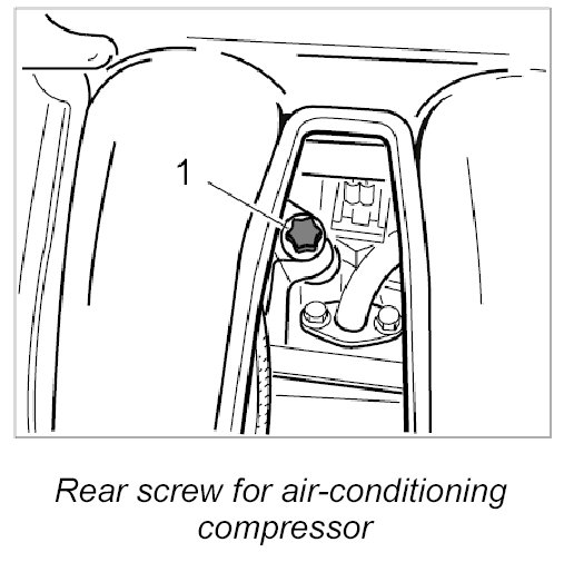 6.1. Unscrew rear Torx screw for air-conditioning compressor (M8 x 120) -1- between the pipes of the intake system.