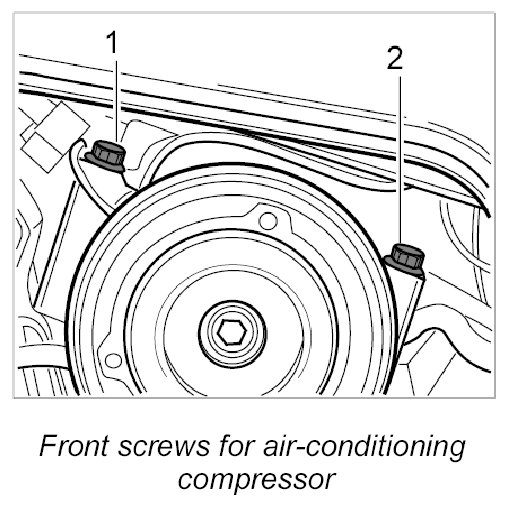 5.2. Screw in front Torx screws for air-conditioning compressor (M8 x 90) -1- and -2-.
