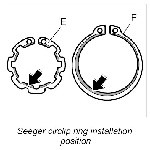 INFORMATION: When installing the Seeger circlip ring, the slanted surface of the Seeger circlip ring must point forward.