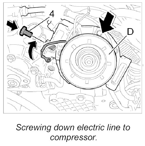 4. Secure the electric line with the fastening screw -4- on the compressor.