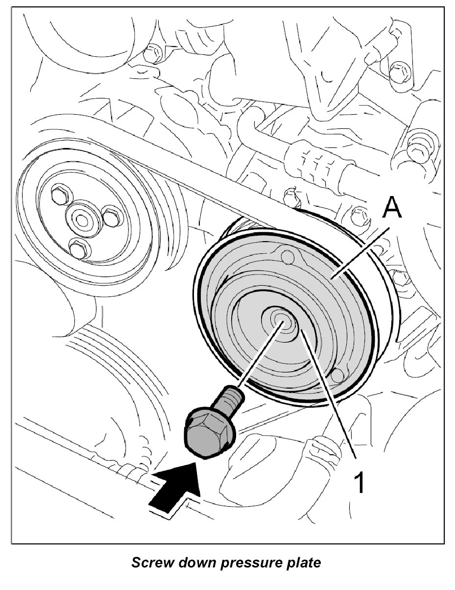 5. Position compressor on engine again and screw down the fastening screws: