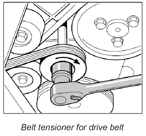 3. Turn the tensioning roller clockwise using a ring wrench (a/f 24), position the drive belt and then tension it.