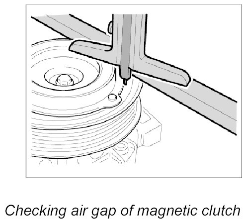 INFORMATION: If a new magnetic clutch is installed, the air gap between pressure plate and pulley must be checked with a depth gauge.