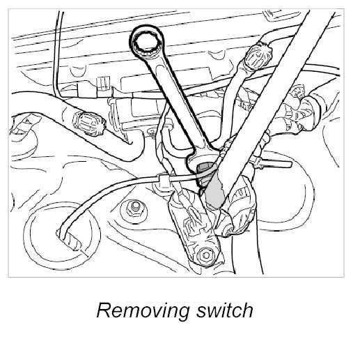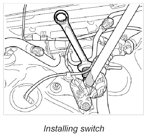 The pressure switch is located in the radiator tank, right side in the direction of travel, under the cowl panel cover.