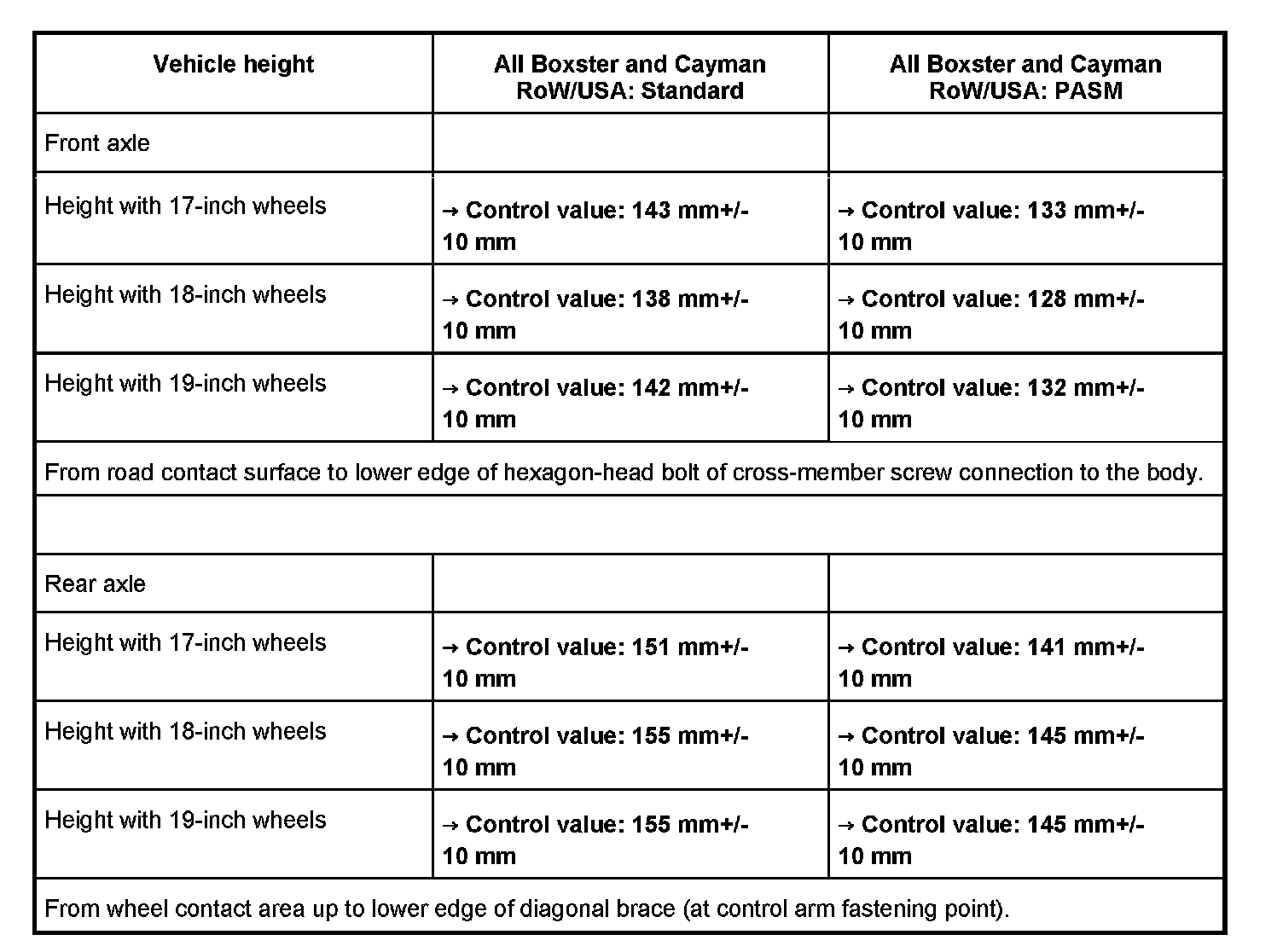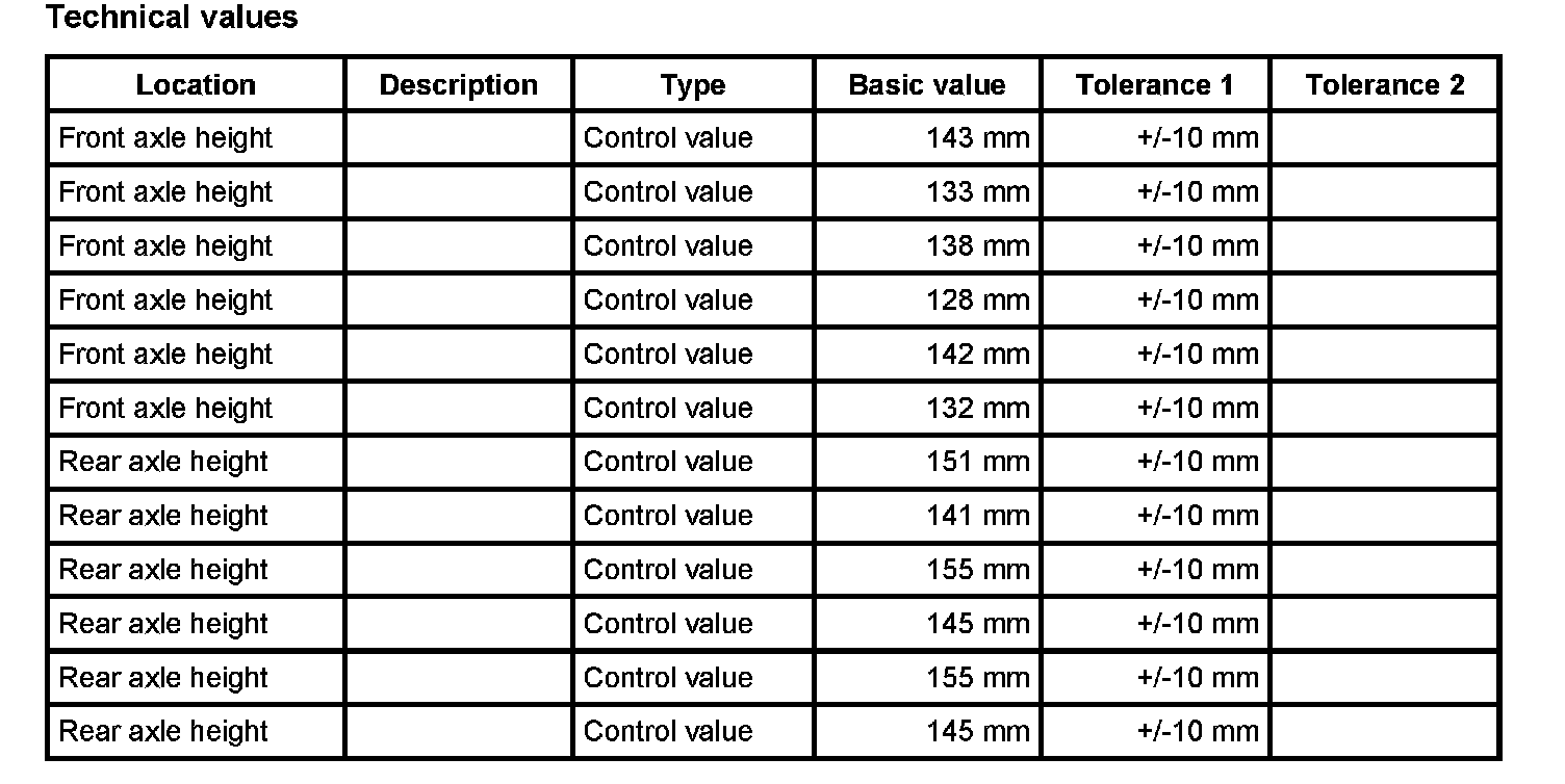WM 440000 Adjustment values for suspension alignmentVehicle height