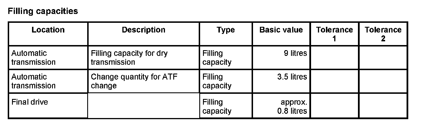 WM 3X00IN Technical data, automatic transmissionTechnical values
