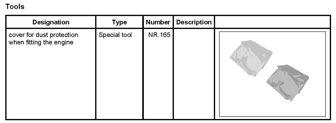 -> Use the cover for dust protection when fitting the engine NR.165 on the engine assembly support.