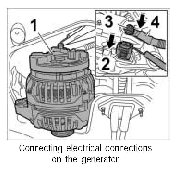 1. Insert generator -1-, connect B+ lead -4- and tighten with fastening nut -3-.