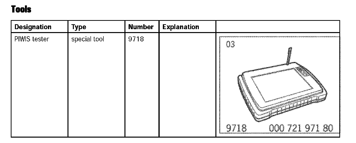 The PIWIS tester 9718 instructions take precedence and in the event of discrepancy these are the instructions that must be followed. Deviations may occur with later software versions.