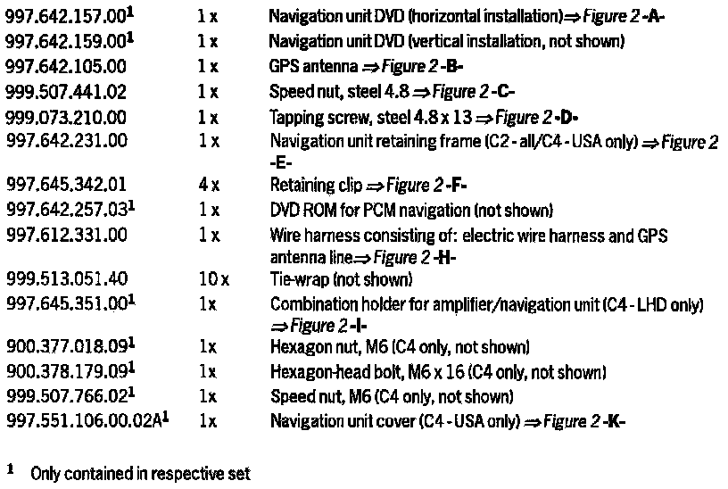 8.3.1 Slide four retaining clips (997.645.342.01) --> Figure 20 -2- onto the retaining frame for the navigation unit --> Figure 20 -1-.