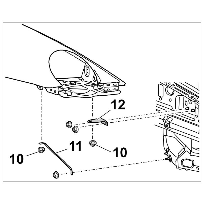 1. Position wing strut -11- and bracket -12- on the body and tighten with fastening nuts -10-. Tightening torque -> Tightening torque: 7.0 ftlb.