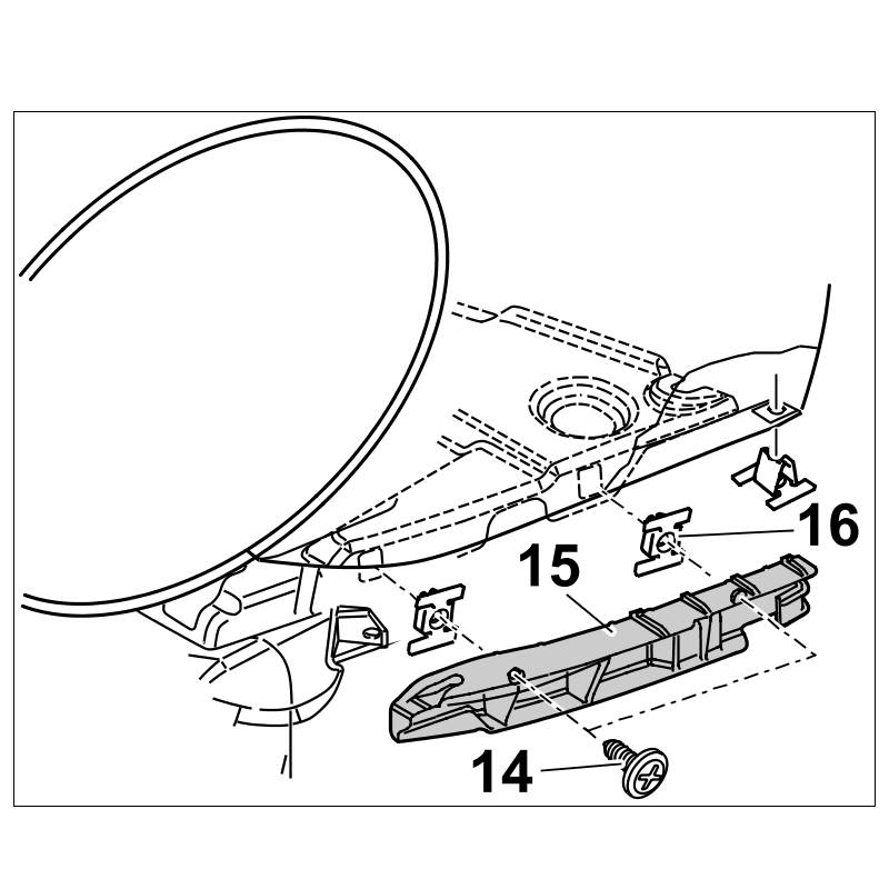 1. Clip fastening nuts -16- into place. Fix retaining strip -15- on the wing up against the stop and tighten with the fastening nuts -14-. Tightening torque -> Tightening torque: 2.0 ftlb.