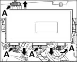 2. Release electric connectors -A- on the control unit and disconnect them.