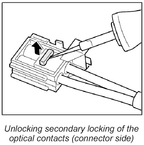 When exchanging the LWL, the optical contacts from the plug connection must be removed.