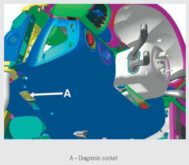 NOTE: The geometry and pin assignments of the diagnosis socket correspond to standards SAE J 1962 and ISO 15031-3.