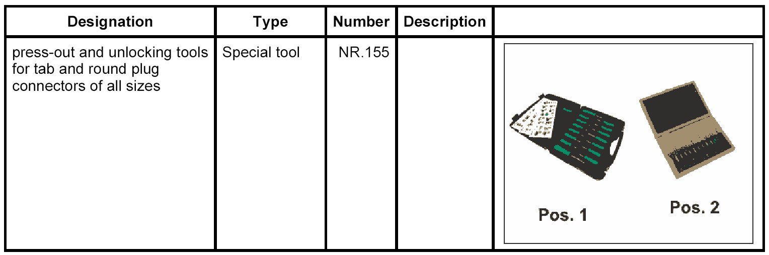 2. Position the press-out and unlocking tools for tab and round plug connectors of all sizes NR.155 on the primary locking mechanism and lift the locking mechanism.