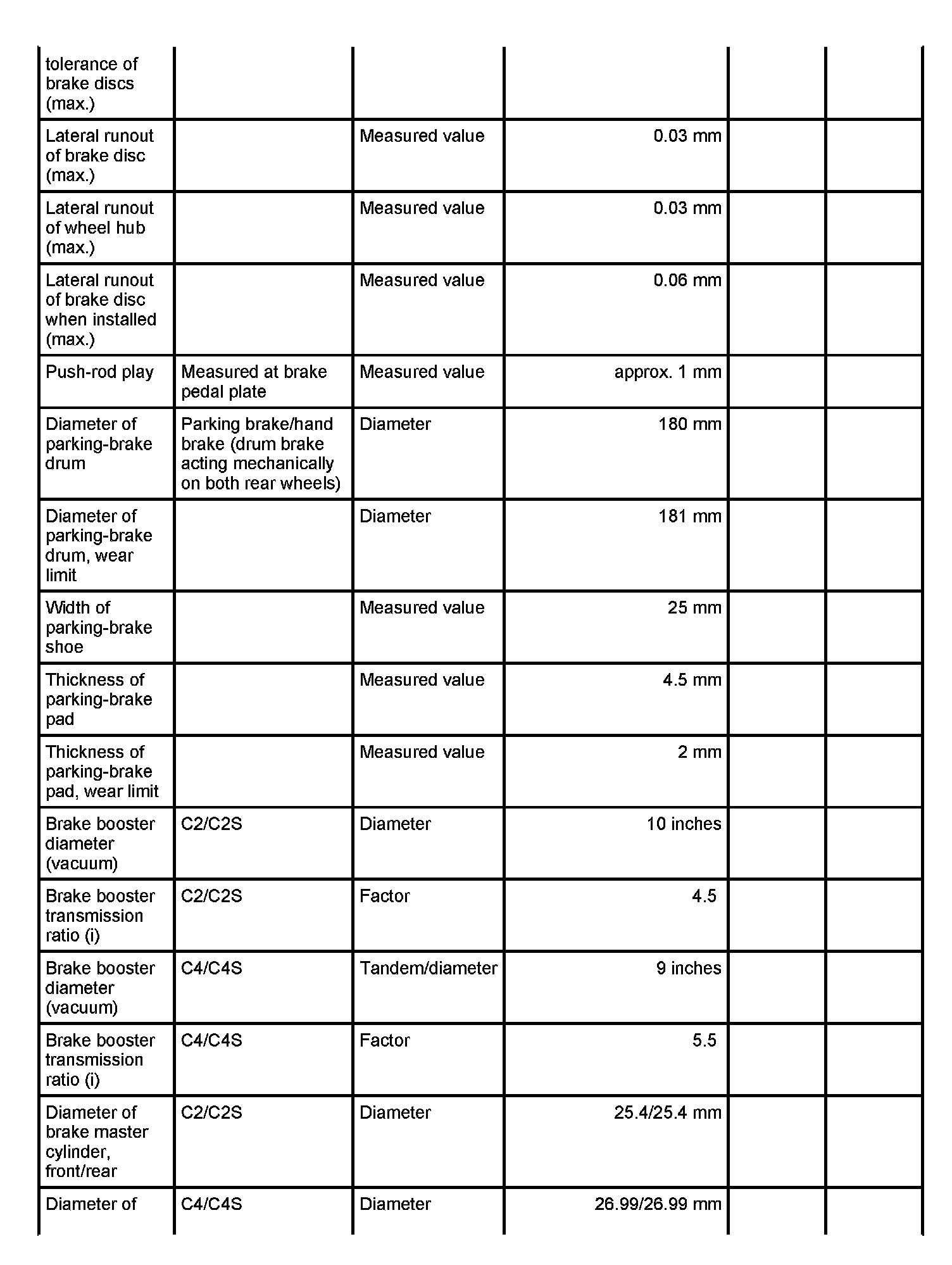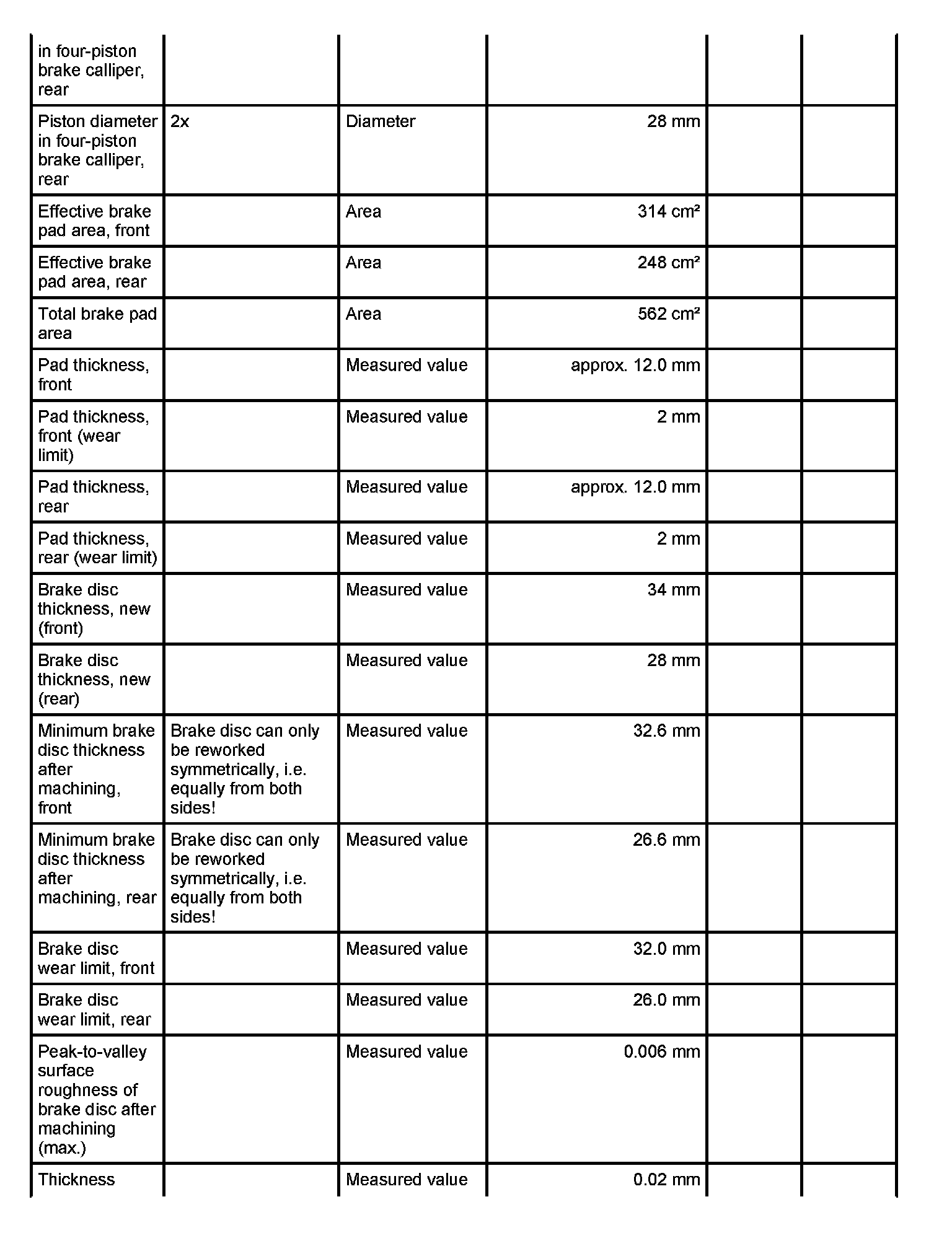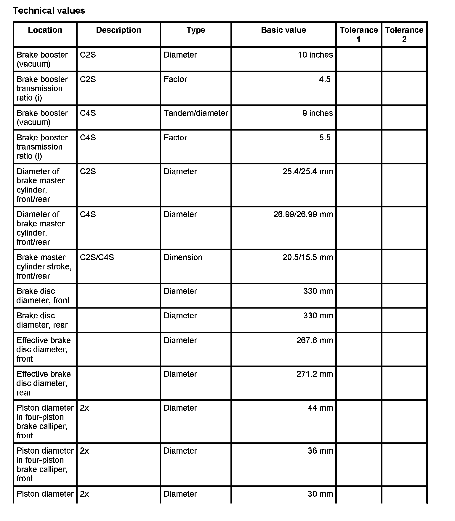 Test values/wear limits for C2/C2S and C4/C4S - PCCB brakes (option)