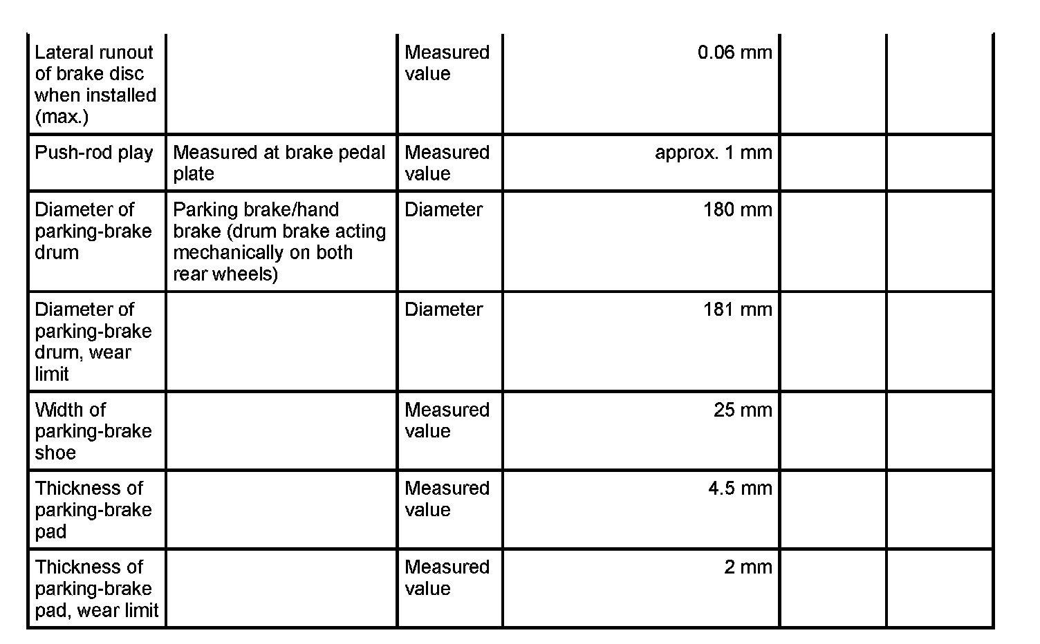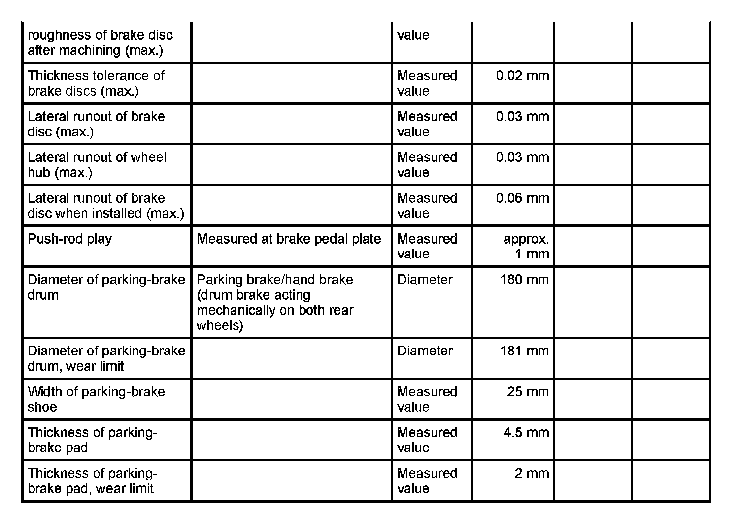 ^ Check brake disc for cracks, minimum thickness, lateral runout, thickness tolerance, flatness and surface roughness.