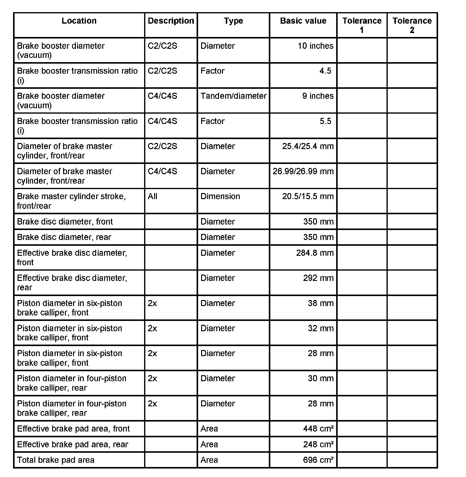 Technical data for C2/C2S and C4/C4S - PCCB brakes (option)