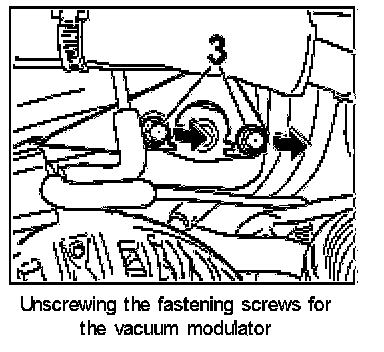 2. Unscrew the two fastening screws -3- for the vacuum modulator.