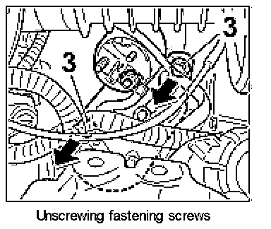 3. Undo the two fastening screws -3-.