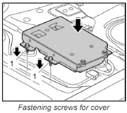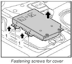 4. Turn over the cover and telephone control unit, position it on the floor of the vehicle and screw down with fastening screws -1-.