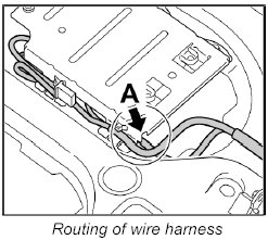 The wire harness must not be routed over the cover, but should be laid along side the cover -A-.