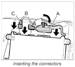 2. Push in electrical plug connections -C, B - until plugs are felt to engage.