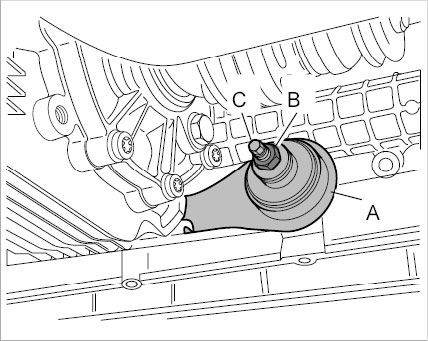 1. Pull connector -A- from sensor for HBA and loosen threaded joint -B- on control lever.