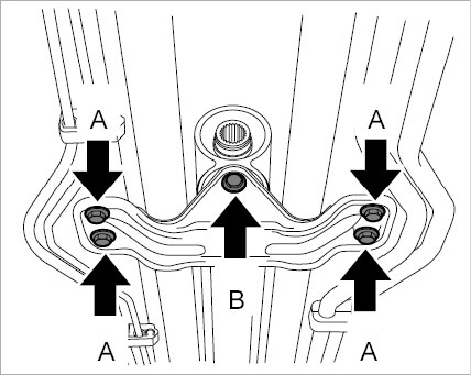 8. Loosen fastening nuts -B- for front bracket -A- and unscrew the studs -C-.